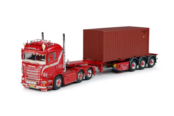 Scania R-serie Lowline 6×2 trekker met 20ft. Containeroplegger D-tec Flexitrailer